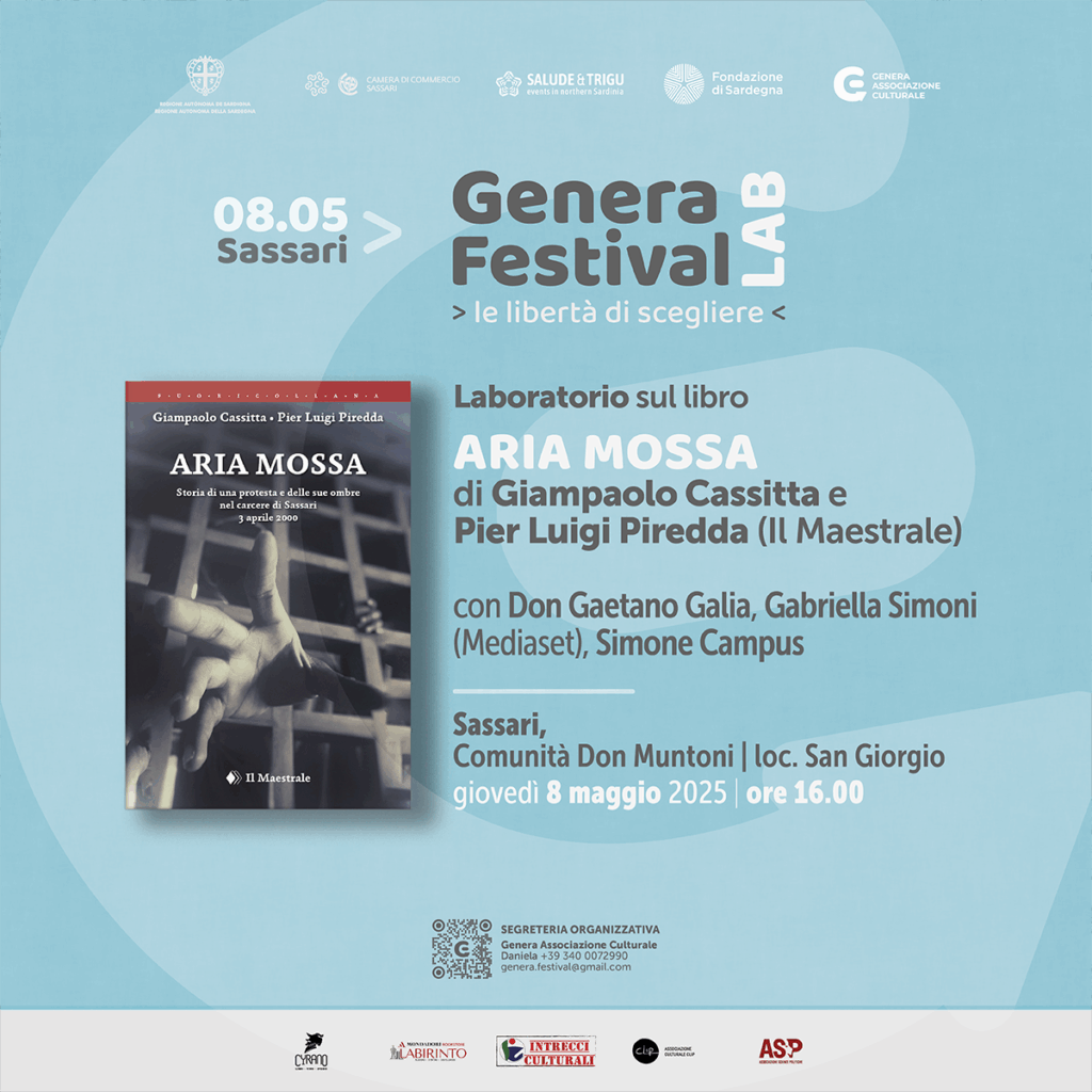 Saranno Don Gaetano Galia, Gabriella Simoni (Mediaset) e Simone Campus a tenere un laboratorio di lettura partendo dal libro Aria Mossa (Il Maestrale) di Giampaolo Cassitta e Pier Luigi Piredda che ricostruisce la protesta scoppiata il 3 aprile 2000 nel carcere di San Sebastiano a Sassari, attraverso testimonianze di detenuti, familiari e operatori, emerge una verità fatta di violenze e silenzi istituzionali, rimasta a lungo nascosta; un’indagine coraggiosa che dà voce a chi ha vissuto quei giorni drammatici.